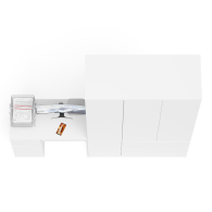 Открывание ящиков и дверей производится за счет пространства между планками и фасадами, высокой двери - за счет системы «Push-to-open». Выдвижные ящики на роликовых направляющих (стола L=350 мм, шкафа L=400 мм) неполного выдвижения обеспечивают комфортную эксплуатацию. На нижних кромках опор предусмотрены пластиковые подпятники для защиты поверхности пола от механических повреждений. Поставляется в разобранном виде в надёжной упаковке, с комплектом сборочной фурнитуры и инструкцией по сборке.