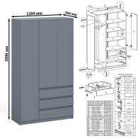 Комплектация включает стол компьютерный Мори МС-1 правый и широкий шкаф-комод Мори МШ1200.1. Продуманная конструкция позволяет убрать лишние предметы, тем самым сохраняя единый стиль оформления помещения. Роль ручек выполняют сами фасады. Аккуратный стол Мори МС-1 правый компьютерный с тумбой и выдвижной панелью для клавиатуры. Тумба имеет нишу с полочкой за распашной дверкой и выдвижной ящик на роликовых направляющих. Стол компьютерный Мори МС-1 правый не имеет универсальной сборки - выдвижной ящик расположен справа. Широкий шкаф-комод Мори МШ1200.1 оборудован тремя распашными дверями и тремя выдвижными ящиками. Слева за дверкой расположено отделение с горизонтальной штангой (372 мм) для одежды на плечиках, антресольной полкой и нижней нишей. Справа сверху за дверьми отделение с тремя полками и снизу тремя выдвижными ящиками. Шкаф-комод не универсален при сборке - отделение с ящиками располагается только справа.