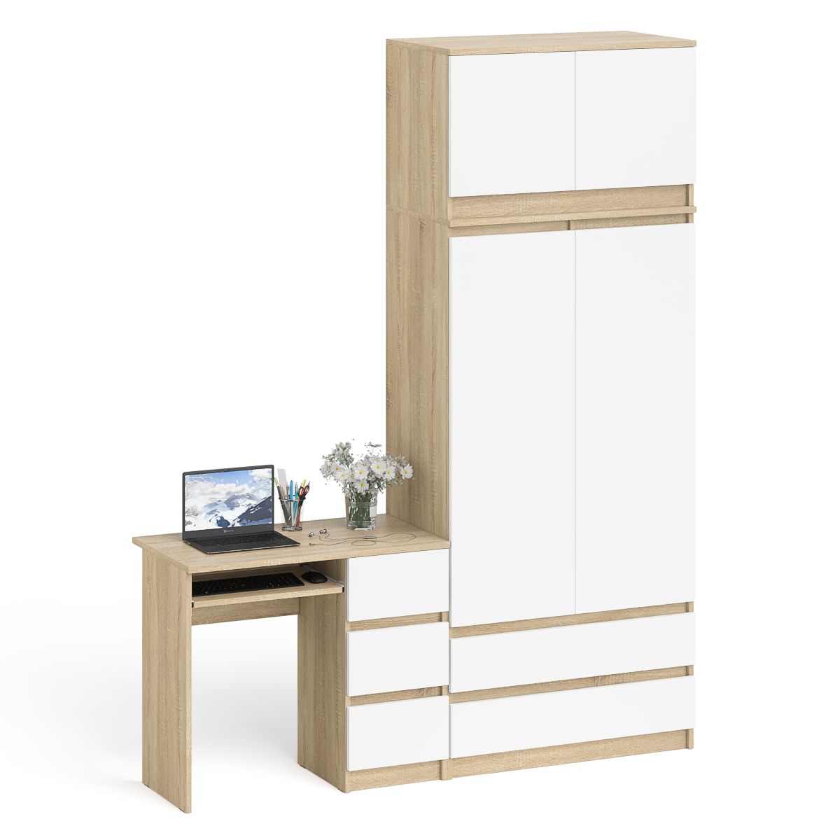 Отзывы о Столплит Стол однотумбовый компьютерный МС-6 правый с шкаф-комодом 900 с антресолью Мори Дуб Сонома, Белый