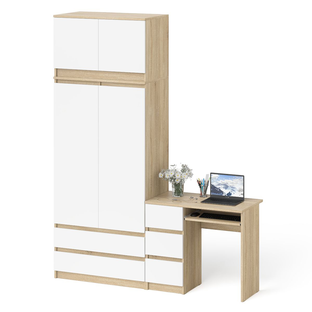 Отзывы о Столплит Однотумбовый стол компьютерный МС-6 левый с шкаф-комодом 900 с антресолью Мори Дуб Сонома, Белый