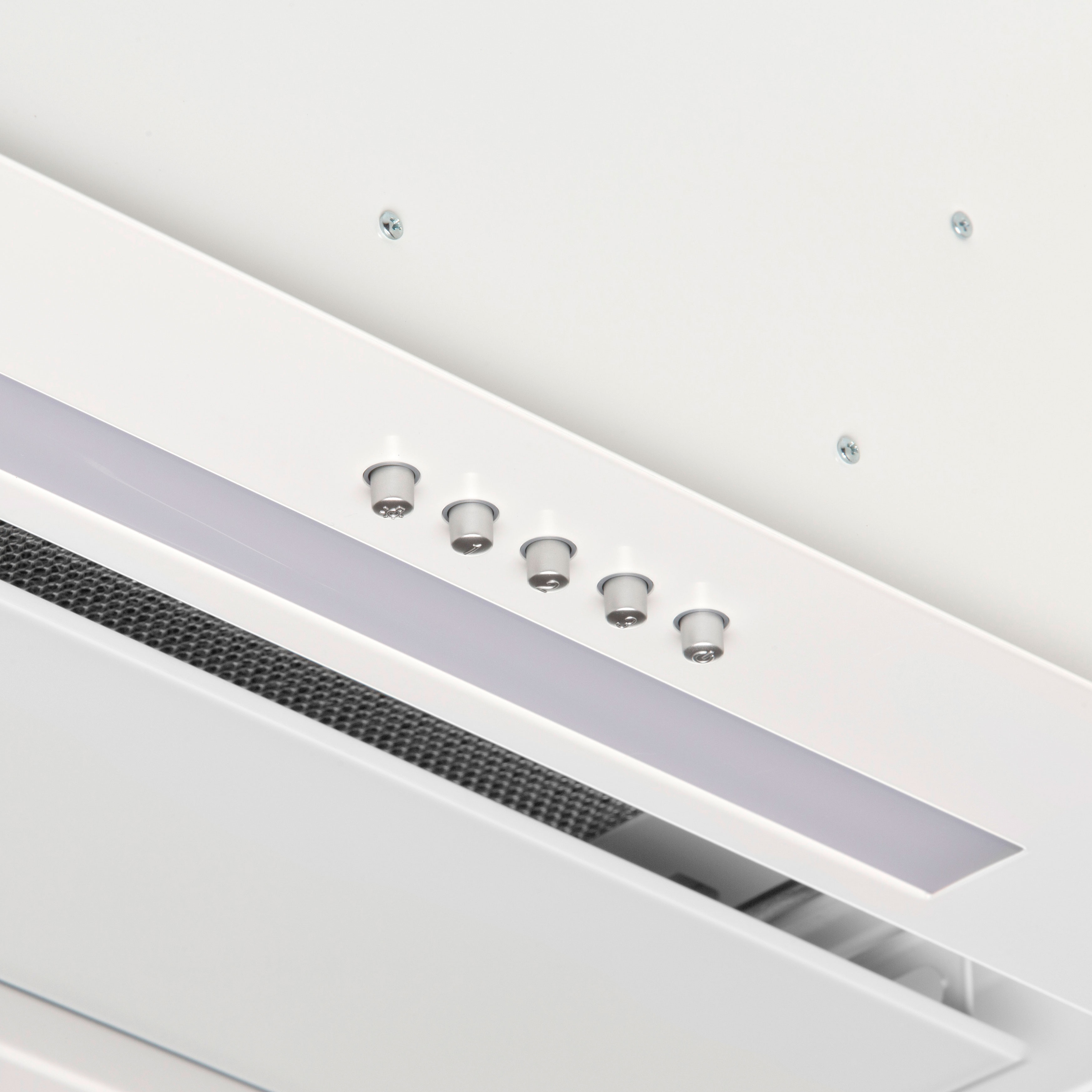 • Фасад вытяжки полностью закрывает нижнюю полку – это позволяет монтировать вытяжку в кухонные шкафчики вместо нижней полки (дна). Удобная система монтажа.