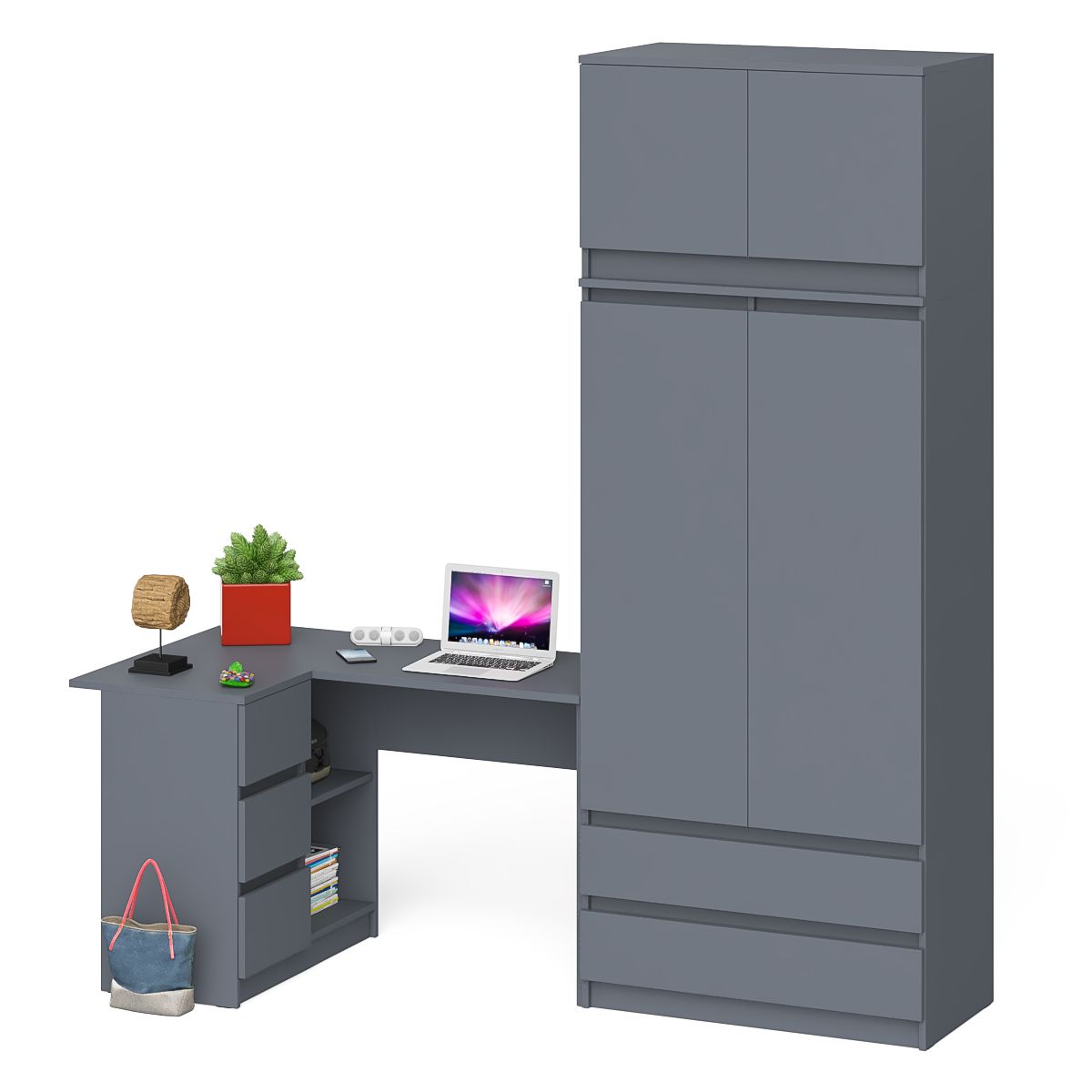 Компьютерный угловой стол - тумба слева со шкафом-комодом и антресолью Мори - минималистичный дизайн и доступная цена позволяет наслаждаться качественной и современной мебелью без значительных финансовых затрат!