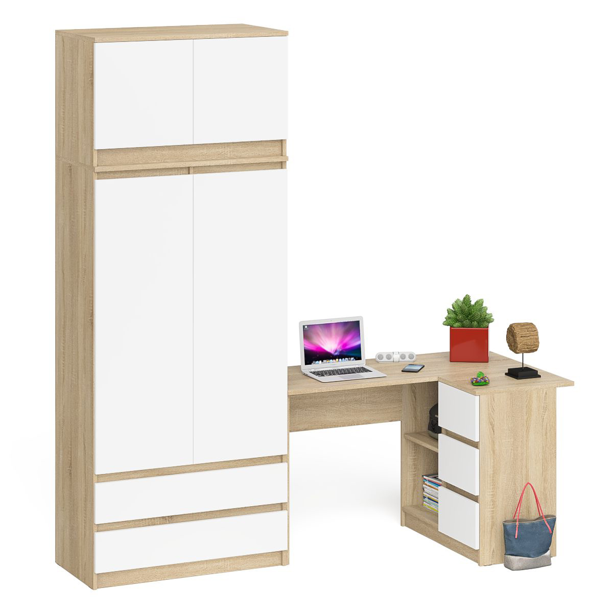 Отзывы о Столплит Угловой компьютерный стол - тумба справа со шкафом-комодом и антресолью Мори Дуб Сонома, Белый