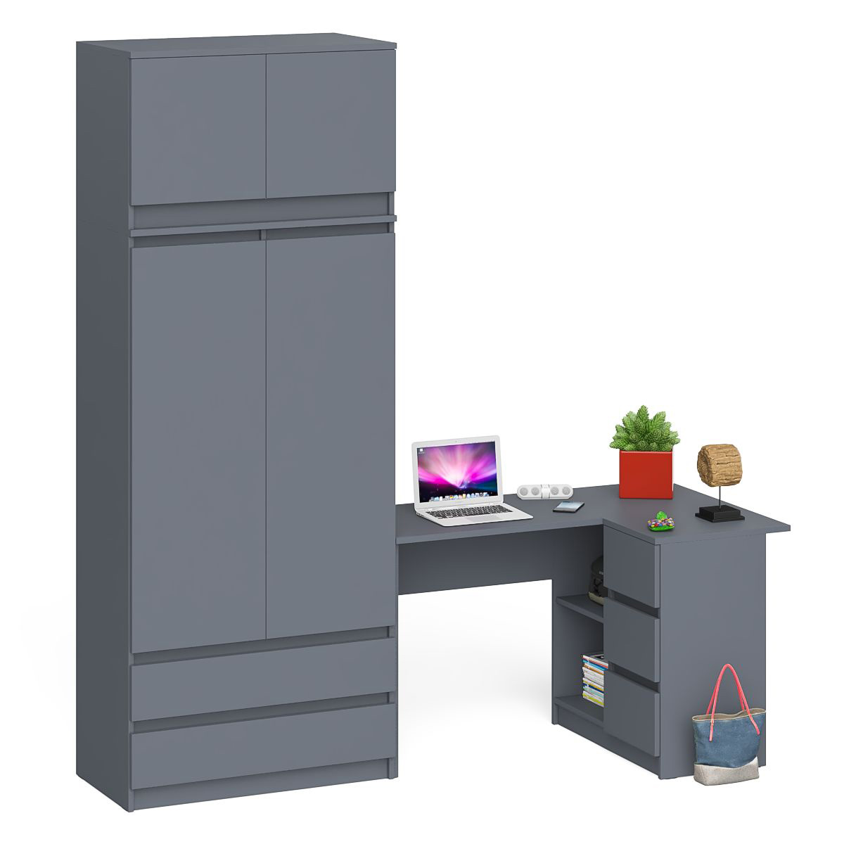 Отзывы о Столплит Угловой компьютерный стол - тумба справа со шкафом-комодом и антресолью Мори Графит
