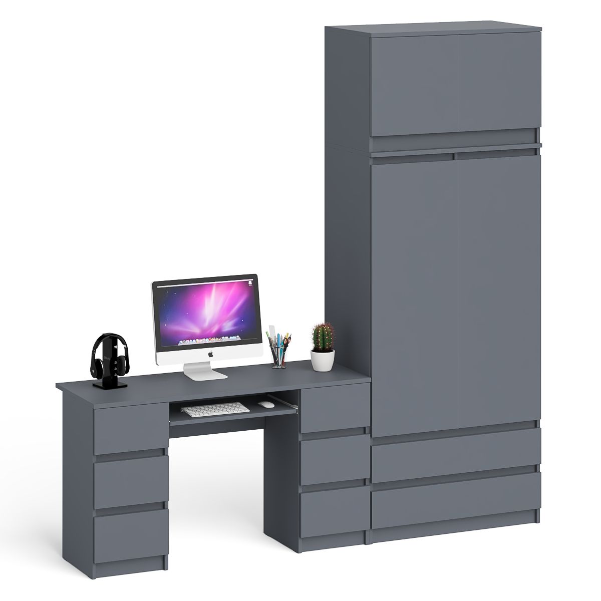 Отзывы о Столплит Стол 2-х тумбовый компьютерный со шкафом и антресолью на 900 Мори Графит