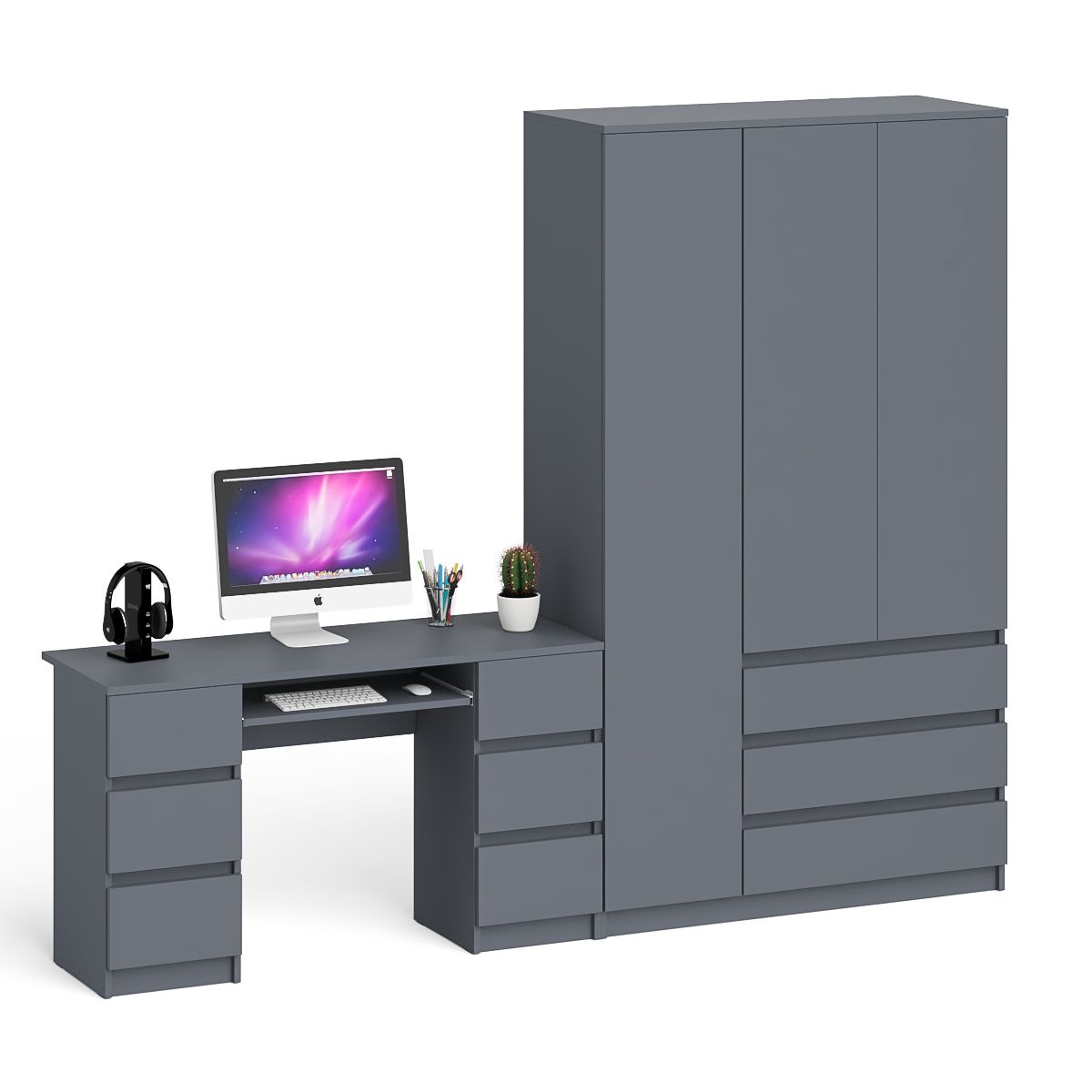 Отзывы о Столплит Стол компьютерный 2-х тумбовый со шкафом-комодом МШ1200 Мори Графит