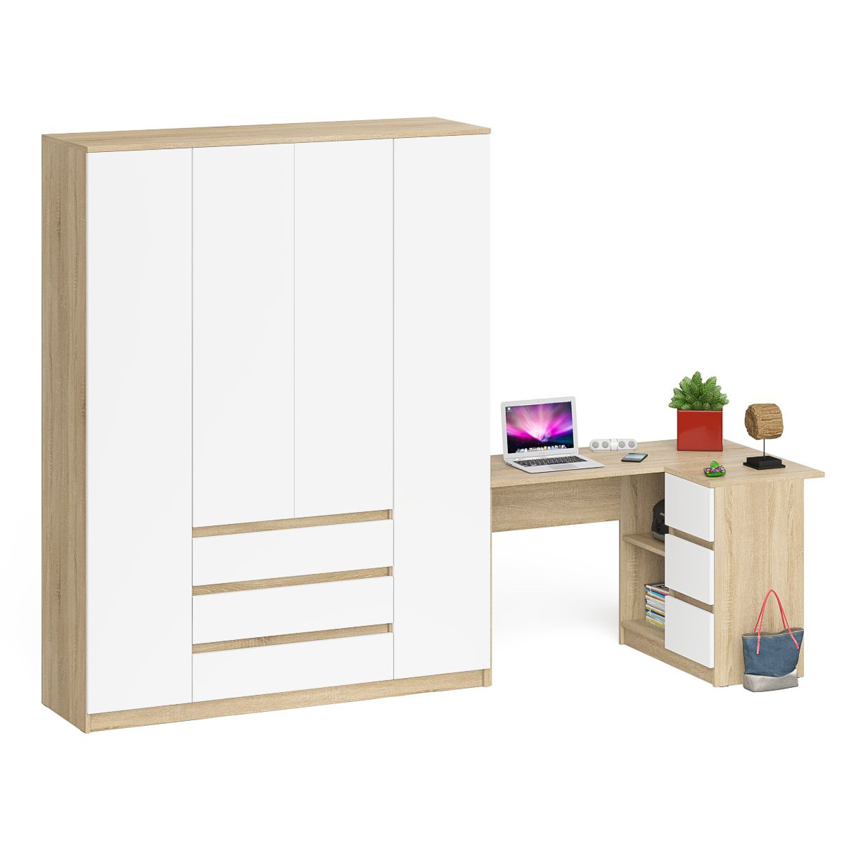 Отзывы о Столплит Стол компьютерный угловой с тумбой справа и шкаф 1600 Мори Дуб Сонома, Белый