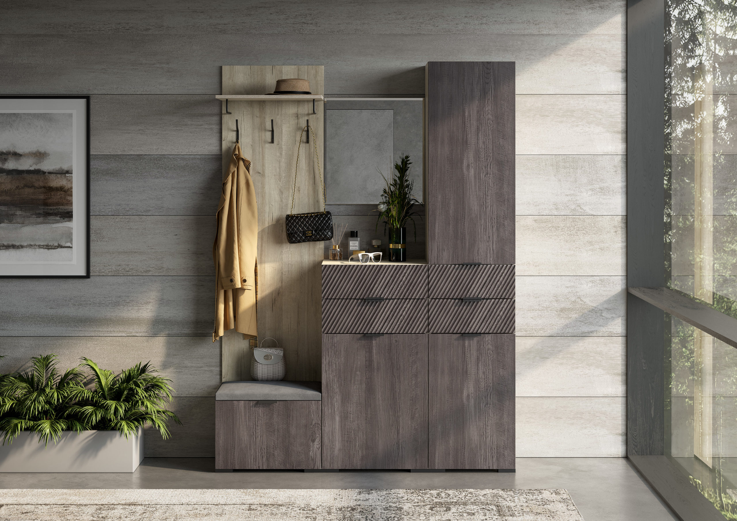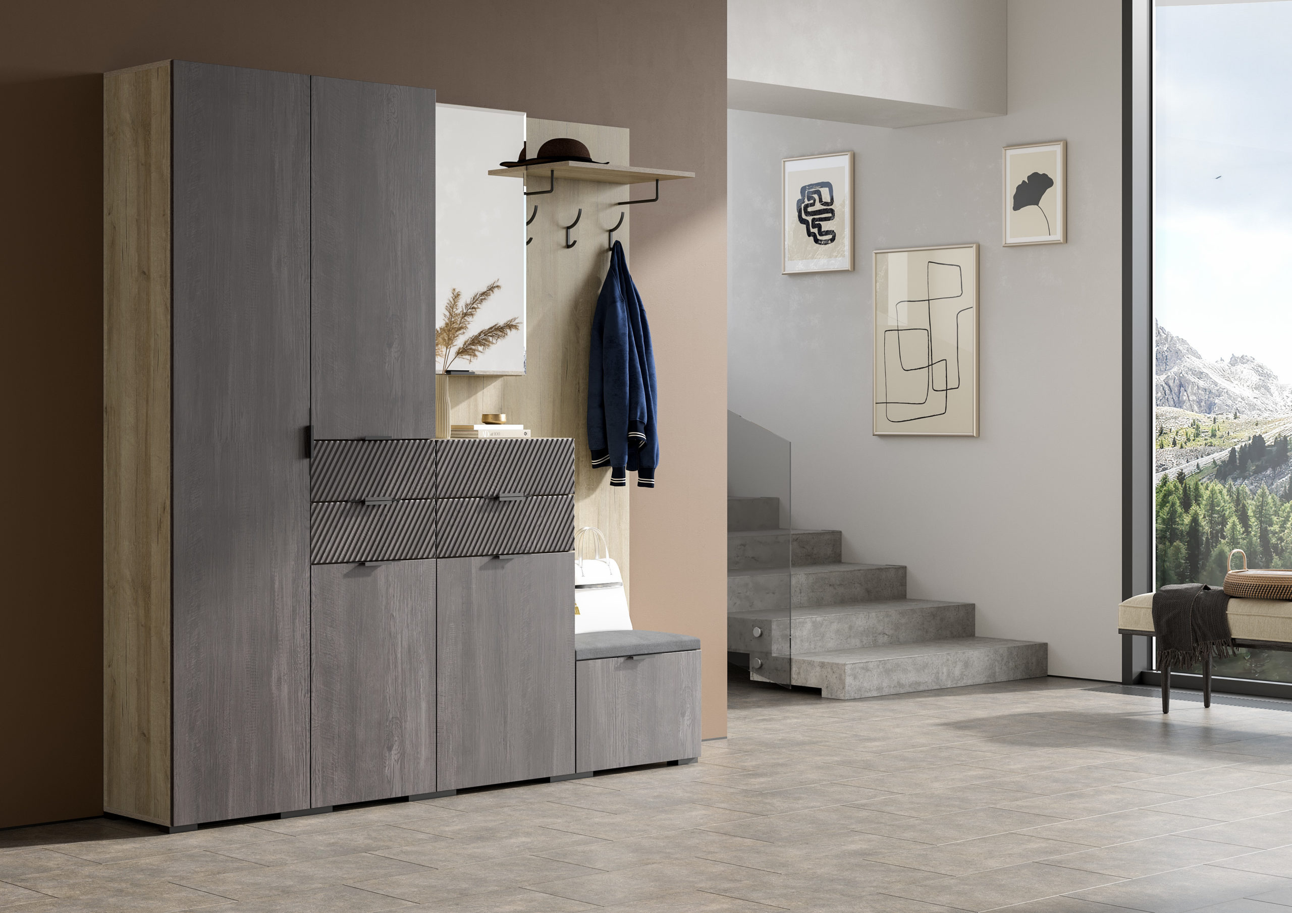 Новые современные цвета: черный ясень — это глубокий серый, легкий и одновременно динамичный цвет в сочетании с санторини белым — цвет с древесными линиями, создающими гармоничный контраст, наполняя пространство воздухом и природной энергией. Визуальная легкость, эстетика графики, элегантная окантовка с четкими формами, баланс теплых и холодных оттенков легли в основу дизайна новых модулей.