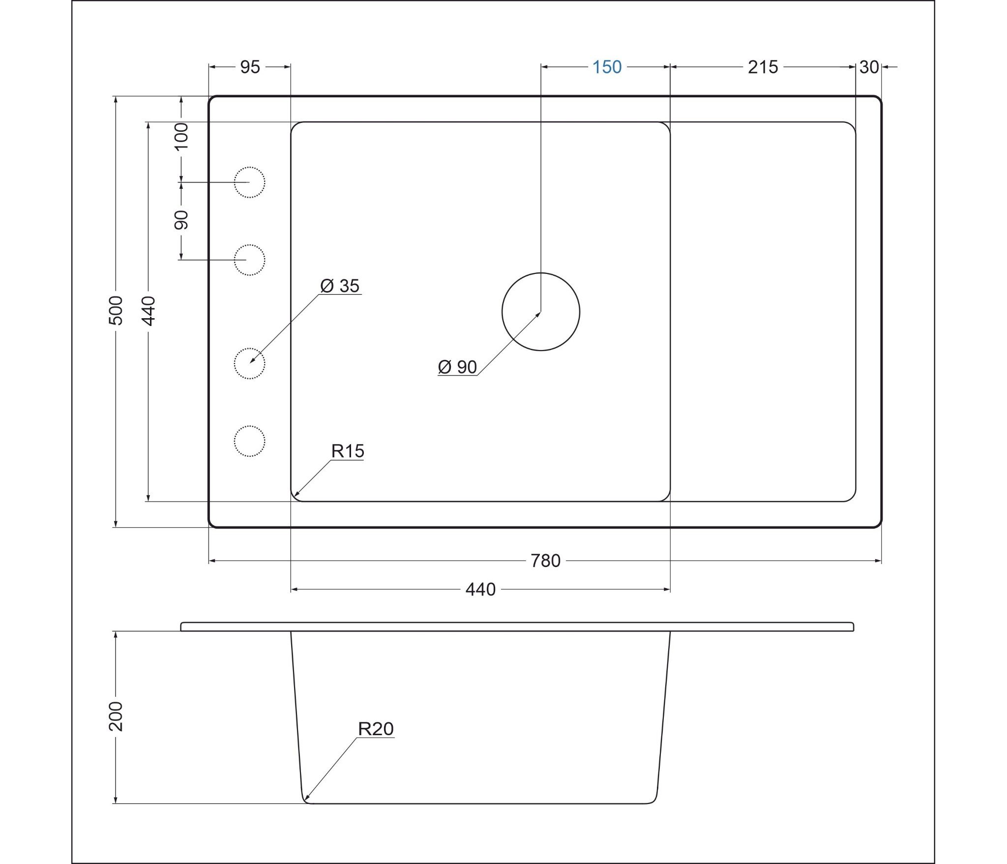 Гранитная мойка EMQ-1780.Q (Черный матовый)