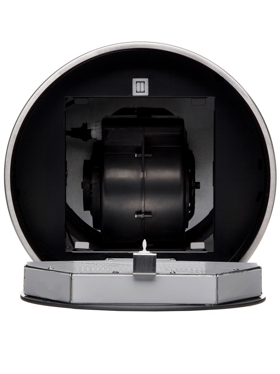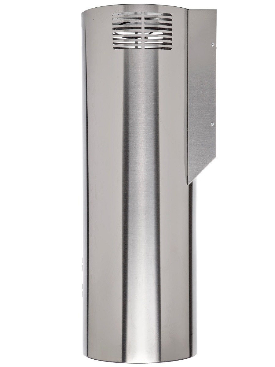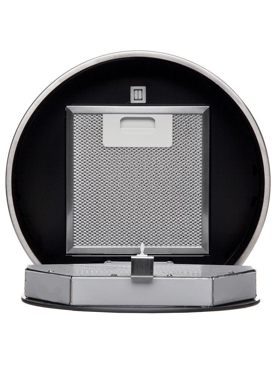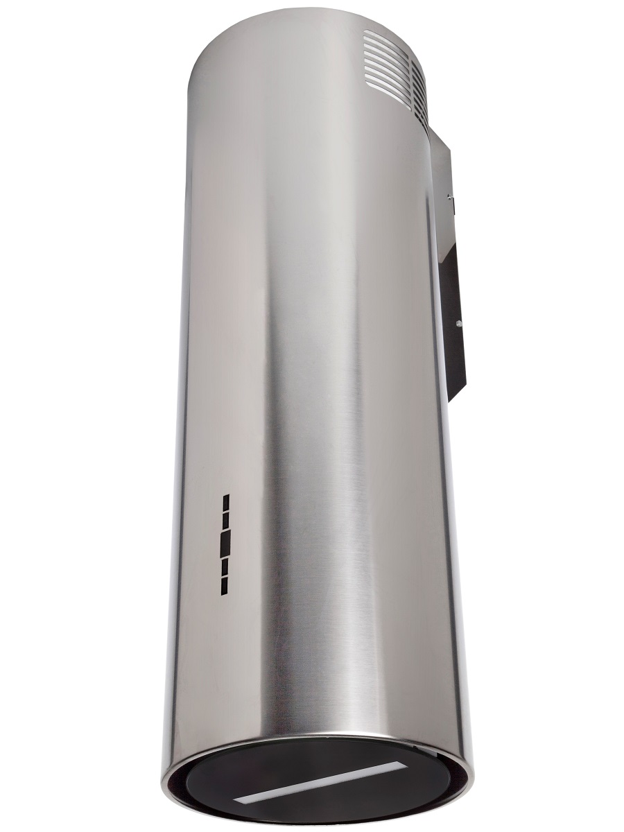 + Вытяжка выполнена в форме цилиндра. Геометрические формы повсеместно используется в современных дизайнерских проектах, они ассоциируются с простотой и лаконичностью, привносят в помещение гармонию и стиль. Стильное сочетание стали и блеска закаленного стекла создают ощущение легкости прочной конструкции. Декоративный стеклянный люк скрывает алюминиевый, жироулавливающий фильтр, придавая завершенность композиции