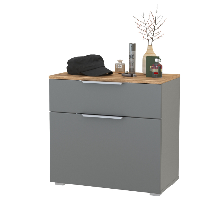 Выполнена в 2-х цветах: белый шагрень/дуб золотой и серый графит/дуб золотой.