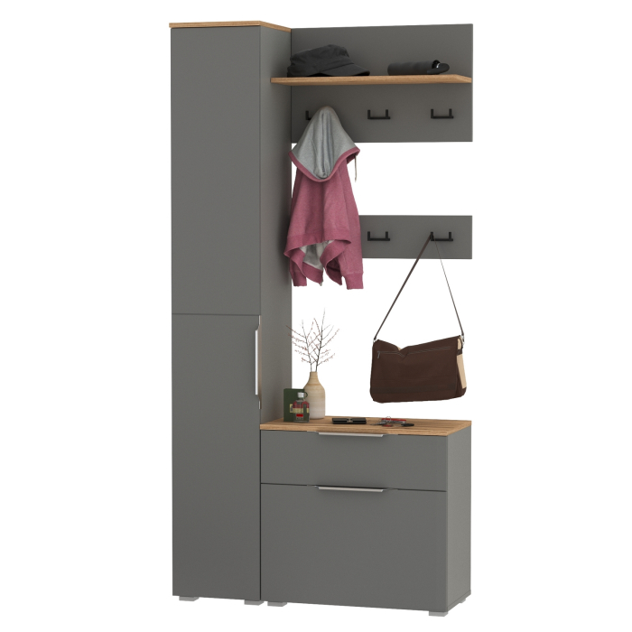 Отзывы о Столплит Тумба для обуви с пеналом для одежды и двумя вешалками Октава. Графит