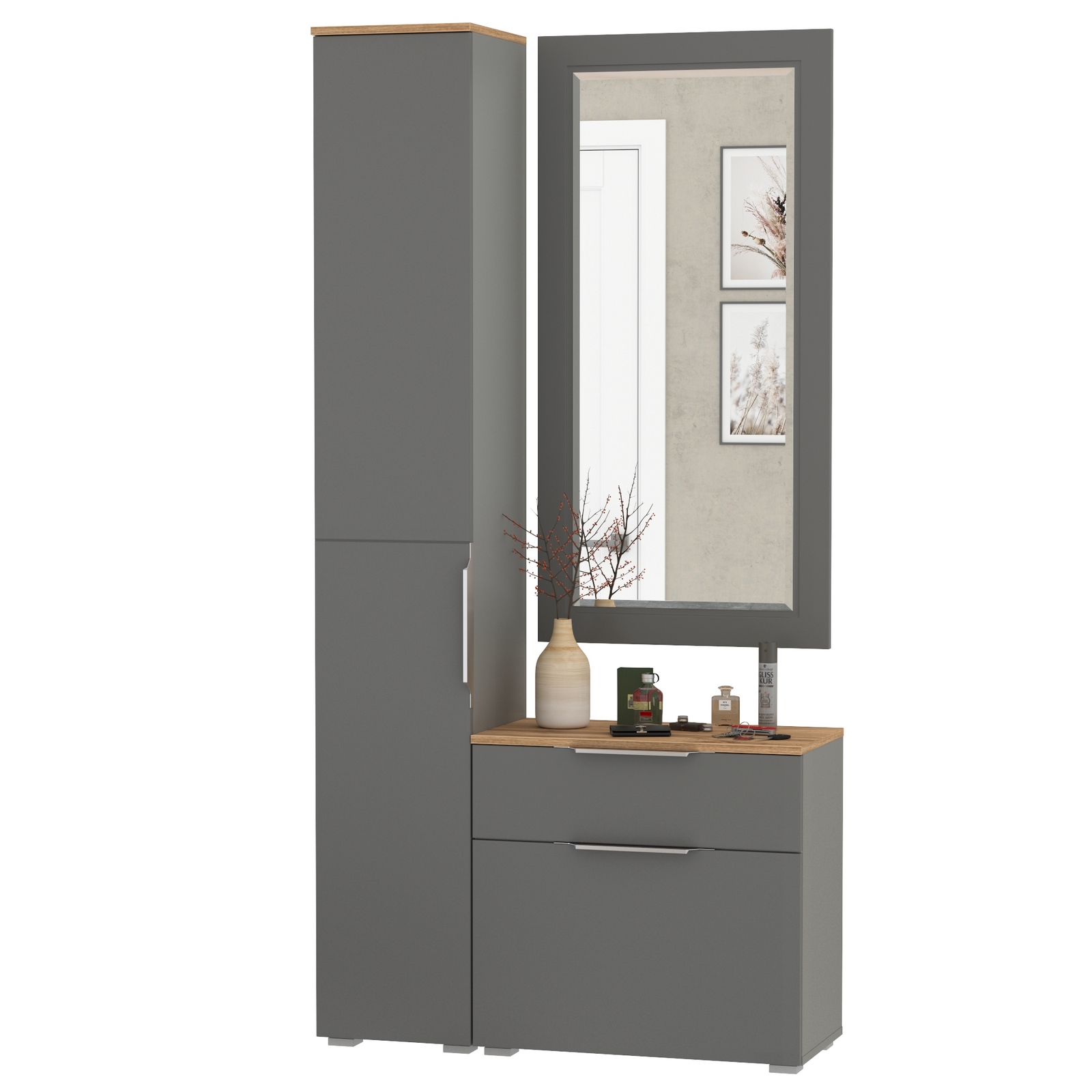 Отзывы о Столплит Шкаф-пенал в прихожую с обувницей и зеркалом Октава. Графит