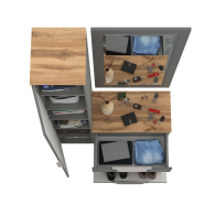 Выполнена в 2-х цветах: белый шагрень/дуб золотой и серый графит/дуб золотой.