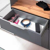 Комплектация состоит из трех модулей - пенала Октава 13.228, тумбы для обуви Октава 16.127 и зеркала Остин 17.03. Тумба для обуви Октава 16.127 с выдвижным ящиком для мелочей сверху и нишей с откидной дверкой с полками для обуви снизу. Отделение с откидной дверкой с полками вмещает до 6 пар невысокой обуви. Шариковые направляющие полного выдвижения обеспечивают тихую эксплуатацию выдвижного ящика. Прямоугольное навесное зеркало Остин 17.03 на панели из МДФ. Согласно Ваших запросов при установке зеркало возможно повесить как горизонтально, так и вертикально. Размер зеркала позволяет ему стать частью множества композиций. Зеркало Остин 17.03 имеет декоративный скос фаски под углом по всему периметру полотна. Скрытые крепежи на задней поверхности и предусматривают выбор расположения зеркала. За распашной дверкой пенала Октава 13.228 расположены 5 полок из ЛДСП для размещения Ваших головных уборов и обуви. Универсальная сборка - сторону открывания двери Вы определяете при сборке. Максимальная нагрузка на каждую полку составляет 8 кг. Металлические ручки выполнены из алюминиевого профиля надежно крепятся и удобно ложатся в руку. Визуально может показаться, что мебель без ручек. Такая видимость создается из-за того, что профиль крепится к торцовой части дверей и ящика. Мебель оснащена пластиковыми опорами серого цвета.