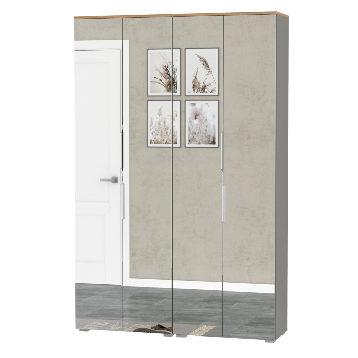 Шкаф для одежды с четырьмя зеркальными дверками Октава – современная компактная прихожая.