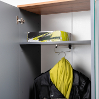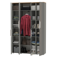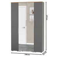 Комплектация состоит из трех модулей - шкафа для одежды Октава 13.338 и двух пеналов Октава 13.228. За распашной каждого дверкой пенала Октава 13.228 (в комплектации 2 единицы) расположены 5 полок из ЛДСП для размещения Ваших головных уборов и обуви. Универсальная сборка - сторону открывания двери Вы определяете при сборке. Двухдверный шкаф за распашными дверками которого расположены антресольная полка для головных уборов, выдвижная штанга для одежды на плечиках и две полки и ниша снизу. Зеркальные створки шкафа визуально расширяют пространство, а минималистичные алюминиевые ручки подчеркивают легкость и простоту линий. Максимальная нагрузка на каждую полку составляет 8 кг. Металлические ручки выполнены из алюминиевого профиля надежно крепятся и удобно ложатся в руку. Визуально может показаться, что мебель без ручек. Такая видимость создается из-за того, что профиль крепится к торцовой части дверей. Мебель оснащена пластиковыми опорами серого цвета.