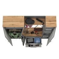 Выполнена мебель из экологически чистой ламинированной ДСП 16 мм, торцы окромлены ПХВ плёнкой 0,4 мм. Фасады выполнены из МДФ с матовой ПВХ-плёнкой. В производстве мебели использована современная фурнитура, отличающаяся высокой надёжностью и долговечностью. Поставляется в разобранном виде в надёжной упаковке, с комплектом сборочной фурнитуры и инструкцией по сборке.