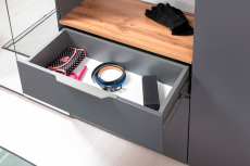 Комплектация состоит из пяти модулей - шкафа для одежды Октава 13.338, пенала Октава 13.228, тумбы для обуви Октава 16.127, вешалки Октава 15.14.02 и вешалки Октава 15.14.01. Тумба для обуви Октава 16.127 с выдвижным ящиком для мелочей сверху и нишей с откидной дверкой с полками для обуви снизу. Отделение с откидной дверкой с полками вмещает до 6 пар невысокой обуви. Шариковые направляющие полного выдвижения обеспечивают тихую эксплуатацию выдвижного ящика. Вешалка Октава 15.14.01 представляет из себя панель из МДФ с полкой для головных уборов с тремя двухрожковыми крючками под ней. Максимальная нагрузка на полку составляет 3 кг, на каждый крючок - 1,5 кг. Вешалка Октава 15.14.02 представляет из себя панель из МДФ с тремя двухрожковыми крючками. Максимальная нагрузка на каждый крючок составляет 1,5 кг. Вешалки объединены и имеют 6 крючков для одежды. В комплекте вешалок имеются скрытые крепления к стене. За распашной дверкой пенала Октава 13.228 расположены 5 полок из ЛДСП для размещения Ваших головных уборов и обуви. Универсальная сборка - сторону открывания двери Вы определяете при сборке. Двухдверный шкаф за распашными дверками которого расположены антресольная полка для головных уборов, выдвижная штанга для одежды на плечиках и две полки и ниша снизу. Зеркальные створки шкафа визуально расширяют пространство, а минималистичные алюминиевые ручки подчеркивают легкость и простоту линий. Максимальная нагрузка на каждую полку составляет 8 кг. Металлические ручки выполнены из алюминиевого профиля надежно крепятся и удобно ложатся в руку. Визуально может показаться, что мебель без ручек. Такая видимость создается из-за того, что профиль крепится к торцовой части дверей и ящика. Мебель оснащена пластиковыми опорами серого цвета.