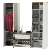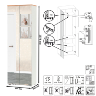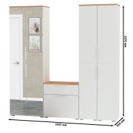 Сдержанный облик и компактная глубина сочетается с продуманным наполнением. Комплектация состоит из четырех модулей - шкафа для одежды Октава 13.338, двух пеналов Октава 13.228 и тумбы для обуви Октава 16.127. Тумба для обуви Октава 16.127 с выдвижным ящиком для мелочей сверху и нишей с откидной дверкой с полками для обуви снизу. Отделение с откидной дверкой с полками вмещает до 6 пар невысокой обуви. Шариковые направляющие полного выдвижения обеспечивают тихую эксплуатацию выдвижного ящика. За распашной каждого дверкой пенала Октава 13.228 (в комплектации 2 единицы) расположены 5 полок из ЛДСП для размещения Ваших головных уборов и обуви. Универсальная сборка - сторону открывания двери Вы определяете при сборке. Двухдверный шкаф за распашными дверками которого расположены антресольная полка для головных уборов, выдвижная штанга для одежды на плечиках и две полки и ниша снизу. Зеркальные створки шкафа визуально расширяют пространство, а минималистичные алюминиевые ручки подчеркивают легкость и простоту линий. Максимальная нагрузка на каждую полку составляет 8 кг. Металлические ручки выполнены из алюминиевого профиля надежно крепятся и удобно ложатся в руку. Визуально может показаться, что мебель без ручек. Такая видимость создается из-за того, что профиль крепится к торцовой части дверей и ящика. Мебель оснащена пластиковыми опорами серого цвета.