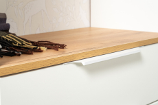 Выполнена в 2-х цветах: белый шагрень/дуб золотой и серый графит/дуб золотой.
