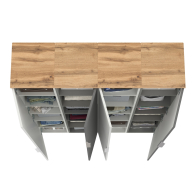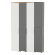 Комплектация состоит из четырех модулей - четырёх пеналов Октава 13.228. За распашными дверками пеналов (в комплектации 4 единицы) расположены 20 полок из ЛДСП для размещения Ваших головных уборов и обуви. Универсальная сборка - сторону открывания дверей Вы определяете при сборке. Максимальная нагрузка на каждую полку составляет 8 кг. Металлические ручки выполнены из алюминиевого профиля надежно крепятся и удобно ложатся в руку. Визуально может показаться, что мебель без ручек. Такая видимость создается из-за того, что профиль крепится к торцовой части дверей дополняя общюю композицию. Мебель оснащена пластиковыми опорами серого цвета.