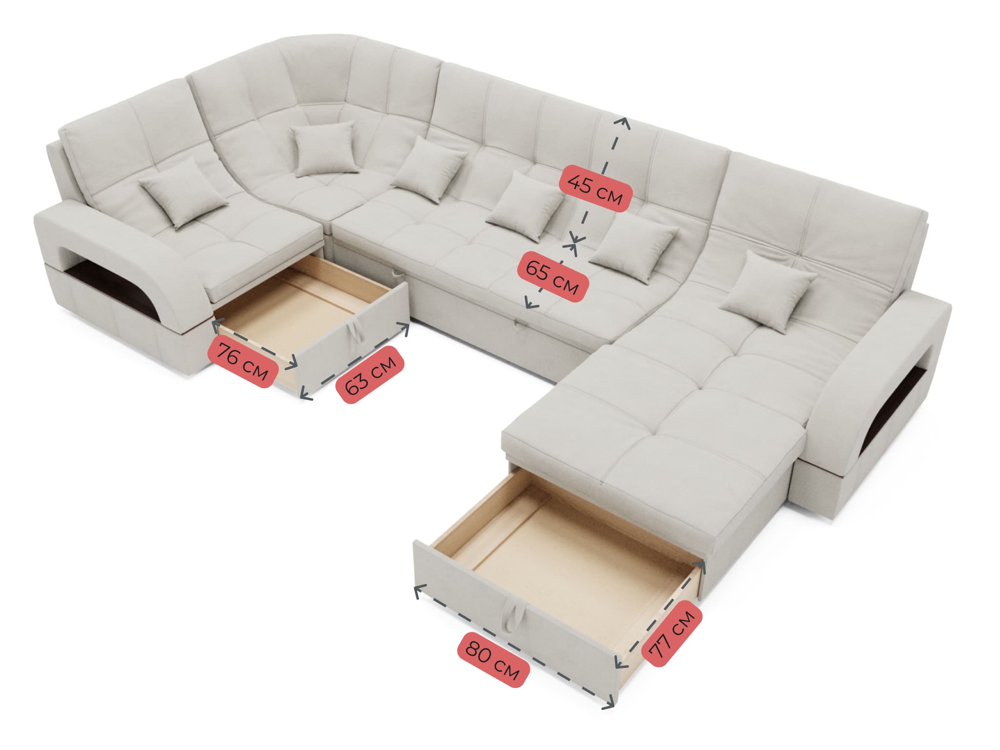 Модульный диван "Майами-4" от YORCOM - это отличный выбор для тех, кто ищет комфортабельный и стильный диван для своего дома. Этот диван выполнен из велюра белого цвета, который придает ему элегантный и современный вид.