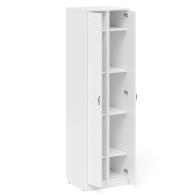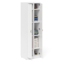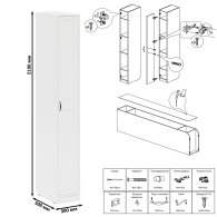 Комплектация состоит из двух узких пеналов объединенных в единый блок. Классический узкий пенал, за распашной дверью которого расположены 4 полки. В комплектации два пенала. Сторону открывания дверей Вы определяете при сборке, что расширяет возможности удобной меблировки прихожей.