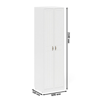 Ручки в виде скоб выполнены из металла в цвете бронза. Декоративная фрезеровка Прованс служит отличным дополнением к общему светлому тону фасада. Двери закреплены на четырёхшарнирных петлях. Фасады выполнены из МДФ односторонней белой 16 мм. и покрыта плёнкой ПВХ 0,3 мм. белое дерево. Корпуса выполнены из ламинированной ДСП 16 мм., которая имеет гигиенический сертификат Е1 и относится к самой безопасной группе ДСП. Торцы деталей облицованы кромкой ПВХ 2 мм. и 0,4 мм., что улучшает эстетический вид и продлевает срок службы обувнице. На опорах мебели используются пластиковые подпятники, сохраняющие Ваше напольное покрытие от повреждений. Поставляются два пенала П-6-500 в разобранном виде в надёжной упаковке, с комплектом сборочной фурнитуры и инструкцией по сборке.