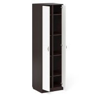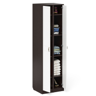 Комплектация состоит из двух узких пеналов объединенных в единый блок. Классический узкий пенал, за распашной дверью которого расположены 4 полки. В комплектации два пенала. Сторону открывания дверей Вы определяете при сборке, что расширяет возможности удобной меблировки прихожей.