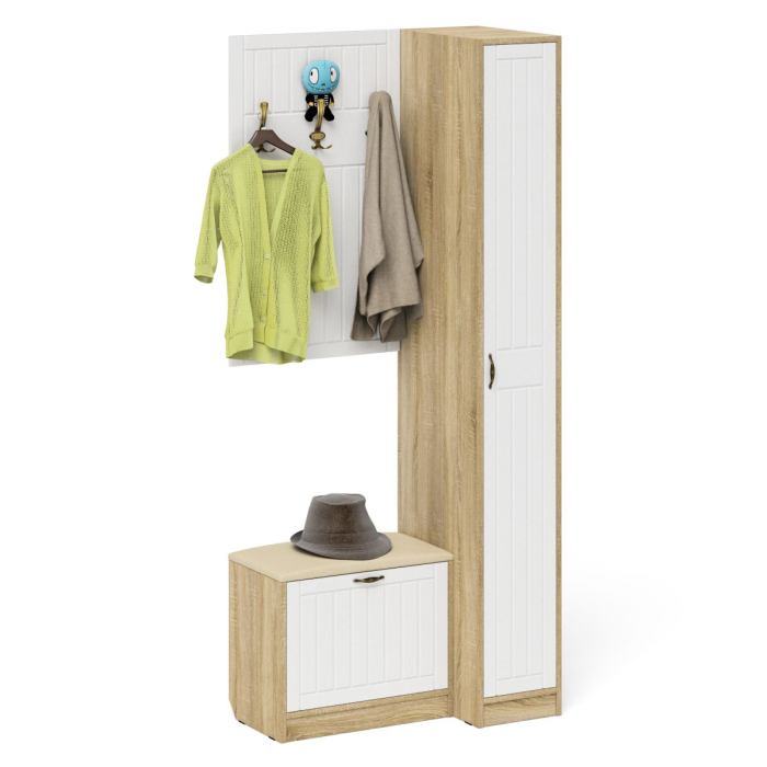 Отзывы о Столплит Вешалка для верхней одежды с обувницей с мягким сиденьем и пенал П-6-500 фрезеровка прованс Белое дерево/дуб сонома