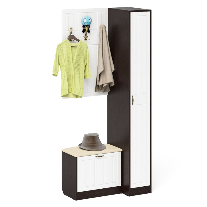 Отзывы о Столплит Вешалка для верхней одежды с обувницей с мягким сиденьем и пенал П-6-500 фрезеровка прованс Белый/Венге