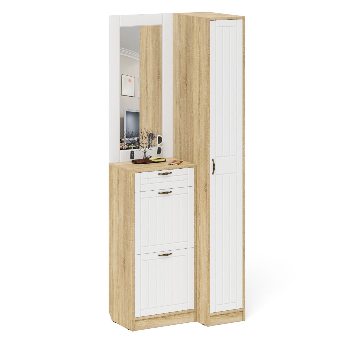 Отзывы о Столплит Пенал для прихожей П-6-500 и высокая обувница с зеркалом фрезеровка прованс Белое дерево/дуб сонома