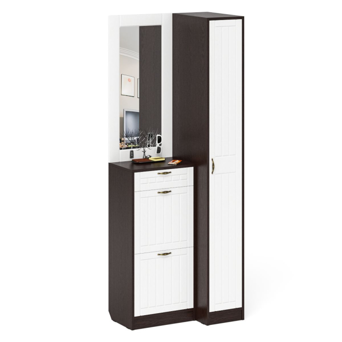 Отзывы о Столплит Пенал для прихожей П-6-500 и высокая обувница с зеркалом фрезеровка прованс Белый/Венге
