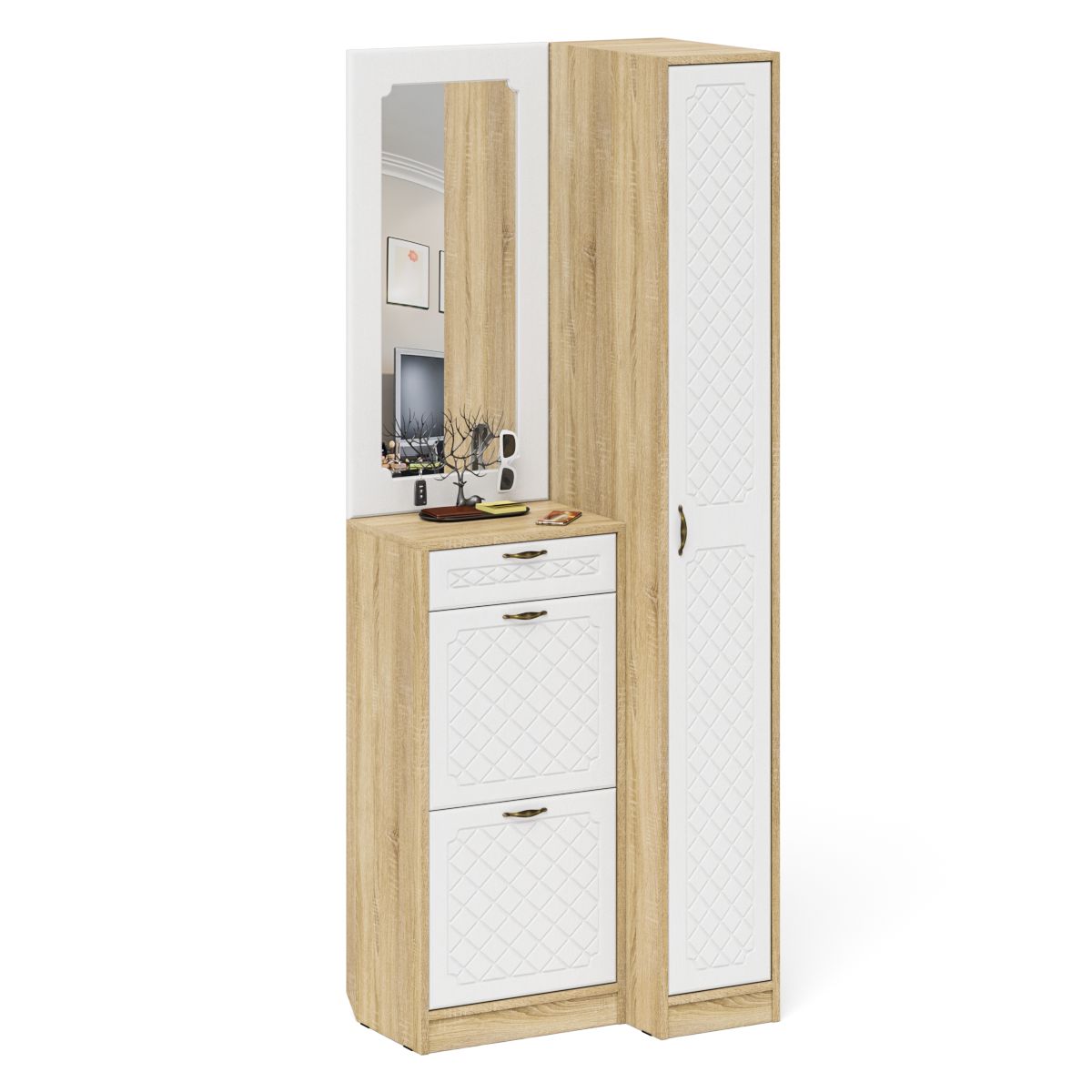 Отзывы о Столплит Пенал для прихожей П-6-500 и высокая обувница с зеркалом фрезеровка ромб Белое дерево/дуб сонома