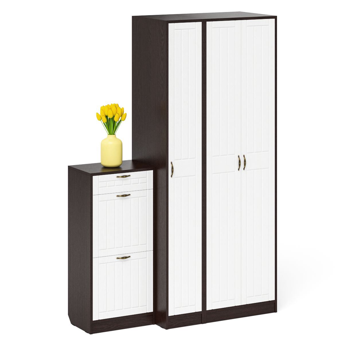 Отзывы о Столплит Тумба для обуви две секции в прихожую П-6-500 с пеналом и шкафом фрезеровка прованс Белый/Венге