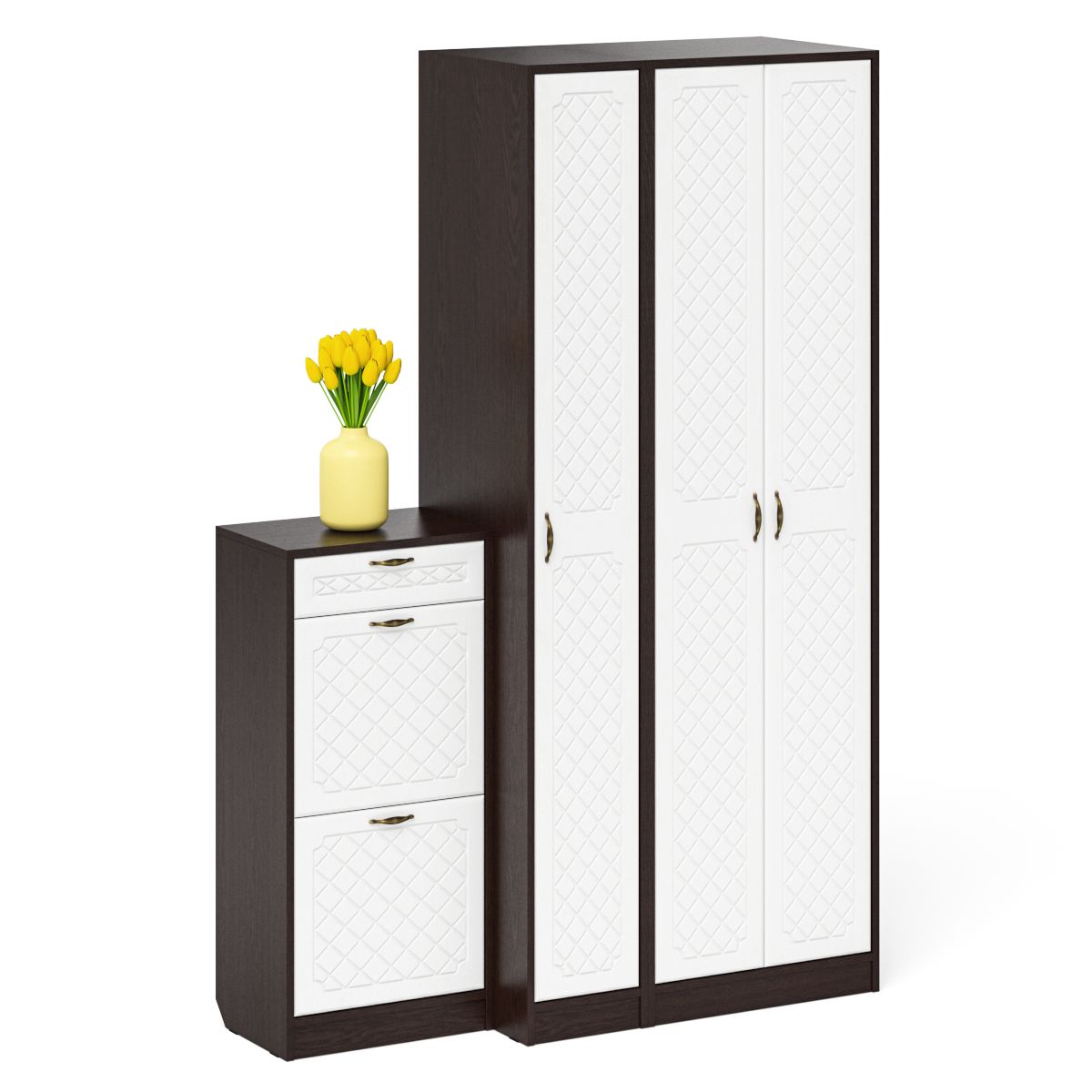 Отзывы о Столплит Тумба для обуви две секции в прихожую П-6-500 с пеналом и шкафом фрезеровка ромб Белый/Венге