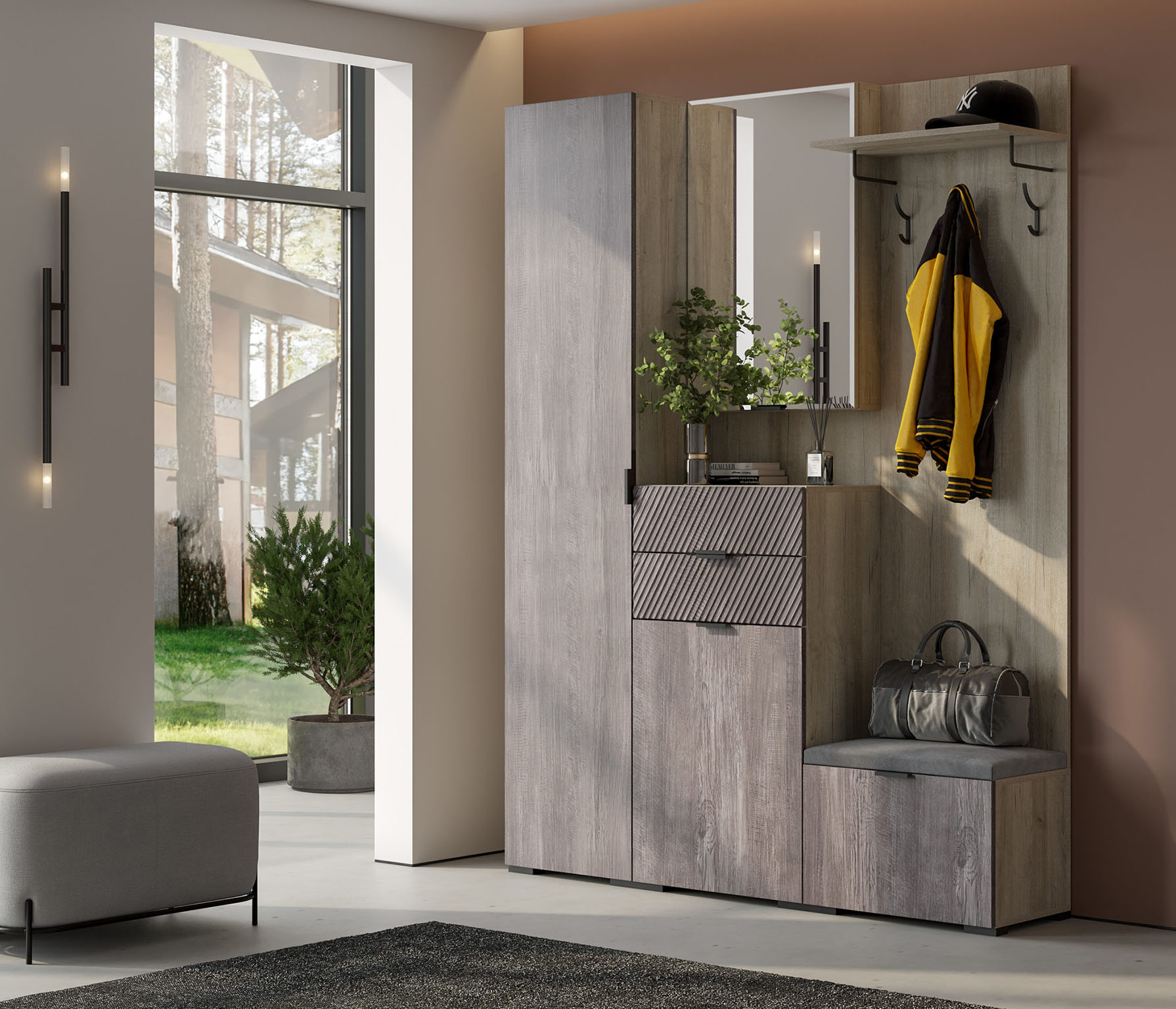 Новые современные цвета: черный ясень — это глубокий серый, легкий и одновременно динамичный цвет в сочетании с санторини белым — цвет с древесными линиями, создающими гармоничный контраст, наполняя пространство воздухом и природной энергией. Визуальная легкость, эстетика графики, элегантная окантовка с четкими формами, баланс теплых и холодных оттенков легли в основу дизайна новых модулей.