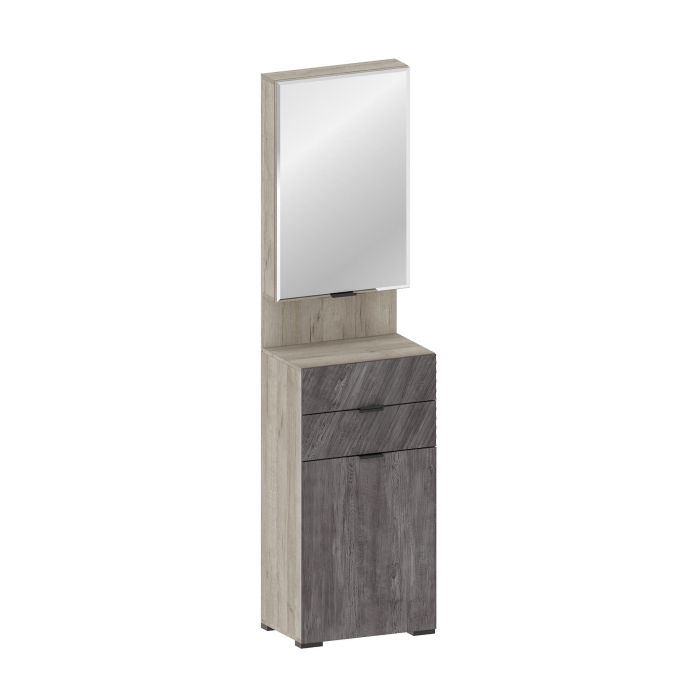 Шкаф-прихожая Шаде ШК-3442 имеет тумбу с двумя ящиками и полки с зеркалом.