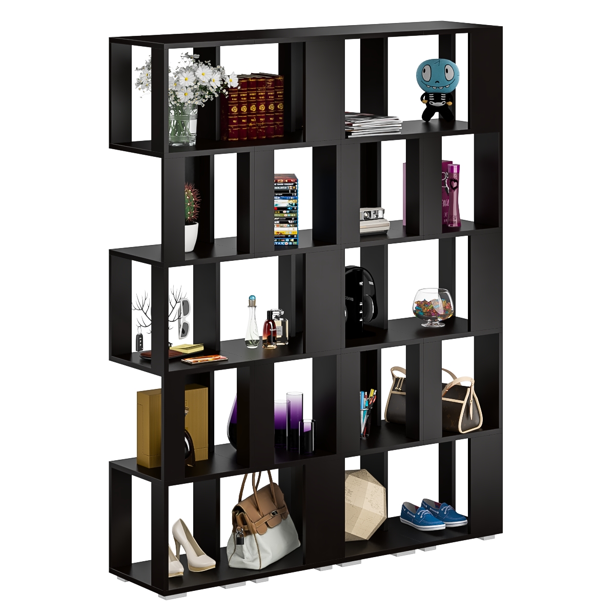 Комплект их четырех стеллажей, объединенных в единый блок, визуально максимально легкая с прекрасным доступом к каждой полечке, идеально подойдет и для книг и журналов и как стенд для поделок Вашего ребенка. Комплект конструктивно представляет из себя 5 ярусов с четырьмя полочками с доступом с четырех сторон. Комплект установлен на пластиковые опоры высотой 20 мм, защищающие покрытие пола от повреждений.