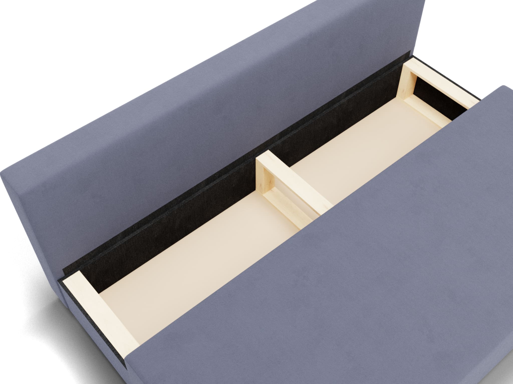 Диван-кровать имеет универсальный угол, что позволяет установить его в любой комнате, даже если она небольшая. Обивка выполнена из высококачественного велюра, который не только выглядит стильно, но и легко чистится.