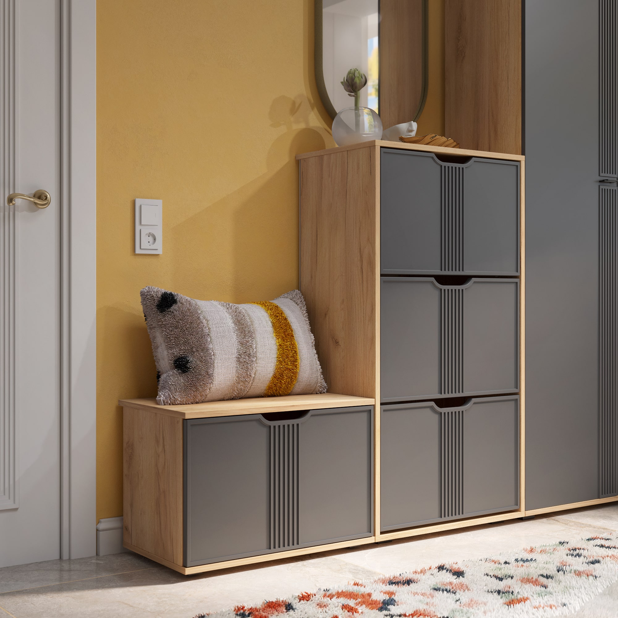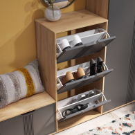 Тумба для обуви Эмилия ЭЛ-43 поможет создать уютную атмосферу в вашей прихожей. Изделие навсегда решит проблему разбросанной обуви по всему коридору. Тумба оснащена тремя отделениями со специальными отсеками для хранения обуви. Свес крышки в 30 мм обеспечит прилегание к стене с любым плинтусом. Высота опоры 20 мм.