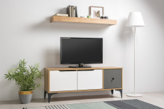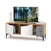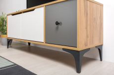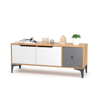 Тумба под ТВ Вайс 13.270.01 - современная тумба под ТВ придётся по вкусу любителям стиля лофт в оформлении интерьера. Сдержанный дизайн, сочетание тёплого цвета дерева и холодного цвета фасадов выдержаны в скандинавском стиле. Особый акцент данной модели - наличие металлических деталей, ручки на фасаде и опор из окрашенного металла. Наличие таких прочных ножек в конструкции тумбы значительно увеличивают её надёжность и долговечность. Этому же способствует и основной материал тумбы - ламинированная ДСП толщиной 16 мм. с кромкой ПВХ. Визуально плита ДСП цвета дуб золотой имеет тиснение, имитирующее спил натуральной древесины. Цветовое исполнение удачно подчёркивает это сходство. Дверки цвета милк софт выполнены из плиты МДФ. Поверхность фасадов дверок гладкая и матовая. Эти дверки лишены ручек, открытие их происходит за край, чему способствует форма фасадов. Конструктивно тумба разделена на три отделения каждое за распашными дверками. Ширина дверей одинакова. Закреплены дверки на четырёхшарнирных петлях. Опоры регулируются по высоте и наделены пластиковыми подпятниками. Тумба имеет универсальную сборку, дверки на фасаде можно расположить в удобном Вам порядке. Высокое качество материалов и компьютеризированный контроль производства гарантируют Вам долгую службу изделия. Поставляется тумба в разобранном виде, надёжно упакованной в гофрокартон, с приложенной подробной инструкцией по сборке.