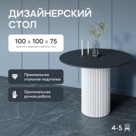 Отзывы о Столплит Стол круглый обеденный с белым металлическим подстольем TRUBIS Wood L 100 Черный