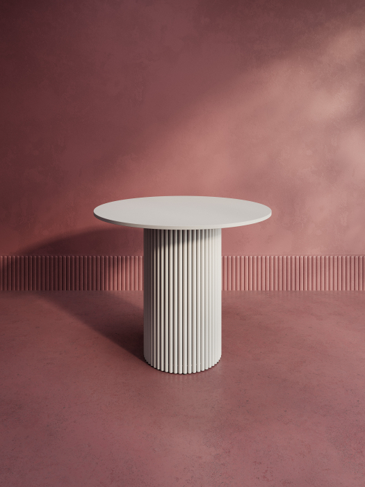Дизайнерский круглый стол с металлическим трубчатым подстольем. Диаметр подстолья D400 мм. Столешница ЛДСП 16мм, диаметр D900 мм. Стандартный вариант - матовая порошковая окраска в чёрных или белых цветах. На заказ возможно изготовление столешницы ЛДСП в индивидуальном цвете и размере под заказ.