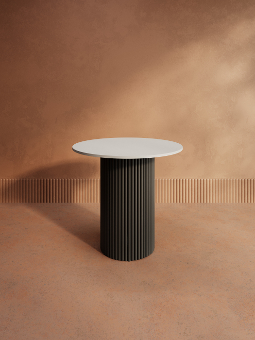 Стол круглый обеденный с чёрным металлическим подстольем TRUBIS Wood L 80 (Белый)