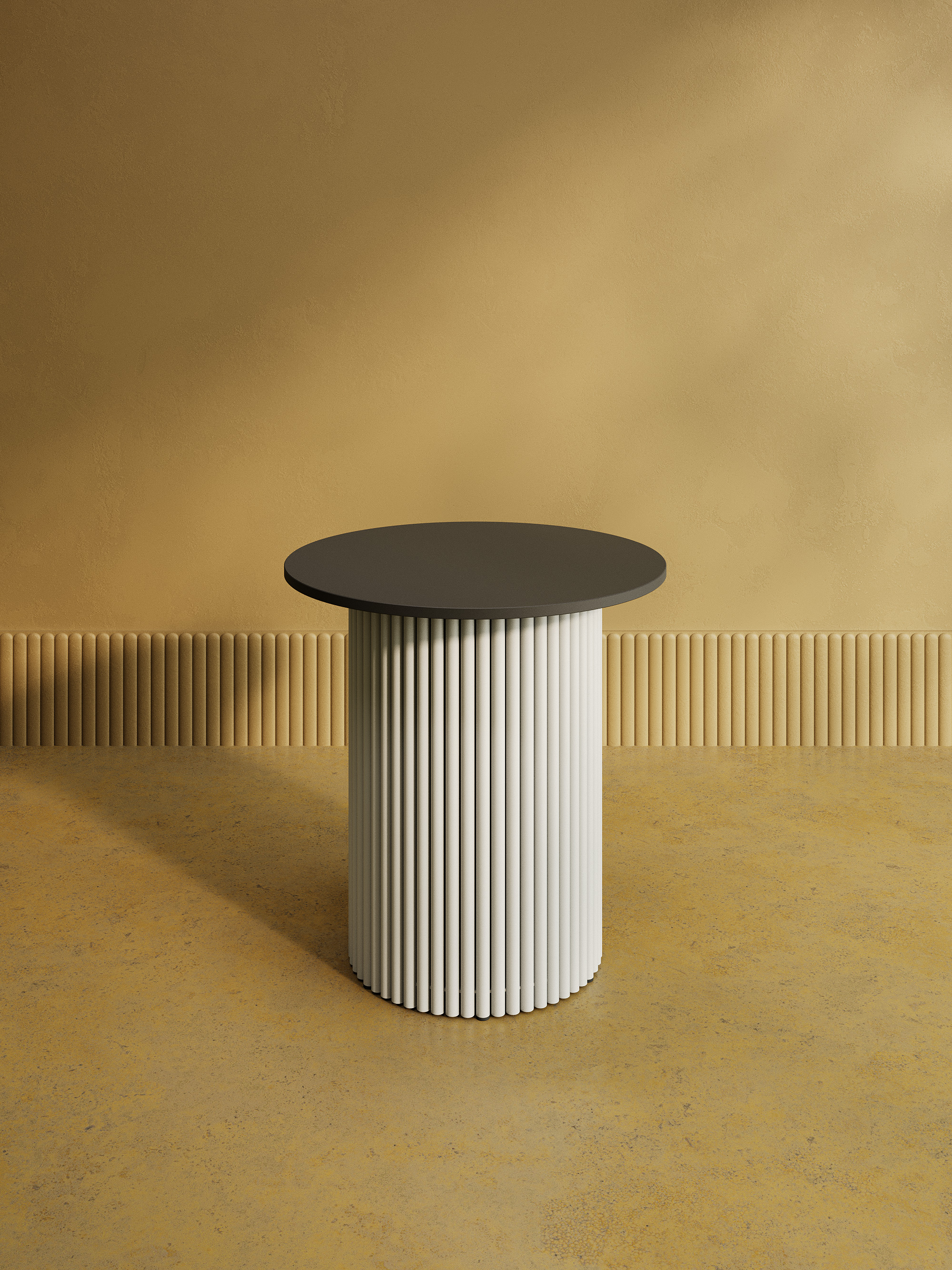 Дизайнерский круглый стол с металлическим трубчатым подстольем. Диаметр подстолья D400 мм. Столешница ЛДСП 16мм, диаметр D600 мм. Стандартный вариант - матовая порошковая окраска в чёрных или белых цветах. На заказ возможно изготовление столешницы ЛДСП в индивидуальном цвете и размере под заказ.