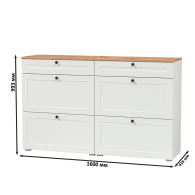 Комплектация состоит из двух тумб для обуви Остин 16.121. Каждая тумба с выдвижным ящиком и 2 откидными дверками с полками для 12 пар обуви снизу. Всего - 24 пары обуви. Каждая откидная дверь расчитана для хранения и размещения 6 пар невысокой обуви, что обеспечивает удобство и порядок в Вашей прихожей. Максимальная нагрузка на каждую полку и ящик - 3 кг. Скрытые направляющие выдвижных ящиков предназначены для обеспечения мягкого и плавного закрывания. Эти направляющие интегрированы таким образом, что они незаметны с внешней стороны, обеспечивая эстетичный внешний вид и комфортное использование мебели. Двери оснащены 4хшарнирными петлями без доводчиков, что обеспечивает простоту использования. Мебель оснащена регулируемыми опорами, выполненными из серого пластика. Лицевая фурнитура в виде черных аккуратных ручек. Изготовлена мебель из популярного материала - ламинированной ДСП 16 мм, торцы окромлены ПХВ плёнкой. Фасады выполнены из рамочного профиля из МДФ со вставками ДВПО с узором. Поставляется в разобранном виде, с комплектом фурнитуры, упакованная в 4-х слойный гофрокартон.