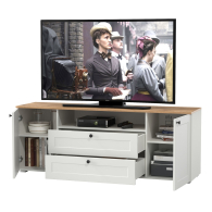 Тумба под ТВ предоставляет удобное и стильное решение для организации развлекательного пространства. В верхней части тумбы под ТВ по центру расположена ниша, идеальная для размещения аппаратуры или декоративных элементов. Два выдвижных ящика по центру внизу обеспечивают дополнительное пространство для хранения. Отделения с распашными дверки по краям со сьемными полками внутри добавляют функциональности. Скрытые направляющие выдвижных ящиков предназначены для обеспечения мягкого и плавного закрывания. Эти направляющие интегрированы таким образом, что они незаметны с внешней стороны, обеспечивая эстетичный внешний вид и комфортное использование мебели. Двери оснащены 4хшарнирными петлями без доводчиков, что обеспечивает простоту использования. Мебель оснащена регулируемыми опорами, выполненными из серого пластика. Лицевая фурнитура в виде черных аккуратных ручек. Изготовлена мебель из популярного материала - ламинированной ДСП 16 мм, торцы окромлены ПХВ плёнкой. Фасады выполнены из рамочного профиля из МДФ со вставками ДВПО с узором. Поставляется в разобранном виде, с комплектом фурнитуры, упакованная в 4-х слойный гофрокартон.
