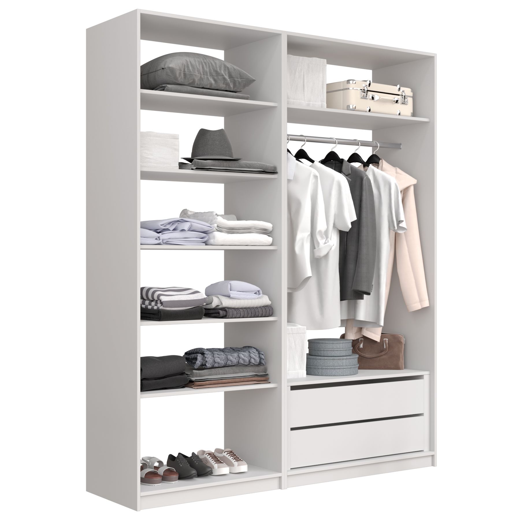 Шкаф с двумя распашными дверьми предлагает удобное решение для хранения вашей одежды и аксессуаров. В его верхней части устроена антресольная полка. Под ней горизонтальная штанга для одежды на плечиках обеспечивает удобное их размещение. Полка и ниша внизу добавляют дополнительное пространство для аксессуаров или других вещей. Максимальная нагрузка на каждую полку - 5 кг. Двери оснащены 4хшарнирными петлями без доводчиков, что обеспечивает простоту использования. Мебель оснащена регулируемыми опорами, выполненными из серого пластика. Лицевая фурнитура в виде черных аккуратных ручек. Изготовлена мебель из популярного материала - ламинированной ДСП 16 мм, торцы окромлены ПХВ плёнкой. Фасады выполнены из рамочного профиля из МДФ со вставками ДВПО с узором. Поставляется в разобранном виде, с комплектом фурнитуры, упакованная в 4-х слойный гофрокартон.